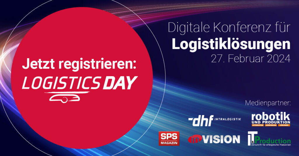 Am 27. Februar findet der 2. Logistics Day statt. Eine Session der digitalen Konferenz für Logistiklösungen dreht sich komplett um fahrerlose Transportlösungen und den technologischen Wandel vom AGV zum AMR. Weitere Sessions an dem Tag beschäftigen sich mit Bildverarbeitung in der Intralogistik, Vernetztes Warehouse Management, Anforderungsgerecht Kommissionieren sowie Prozesstransparenz mit RFID. Hier geht’s zur kostenfreien Anmeldung für die Online-Konferenz!