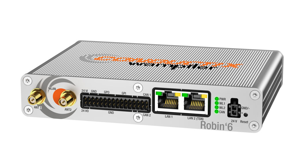 Conductix-Wampfler hat eine All-in-One-Lösung speziell für die sichere Datenkommunikation von fahrerlosen Transportsystemen und autonomen mobilen Robotern entwickelt: Die Wi-Fi-Lösung Robin’6 reduziert Integrations- sowie Betriebskosten und erhöht die Cybersicherheit. Für die bestmögliche Konnektivität und Integration in die Infrastruktur ist sie mit LAN-, CAN- und GPIO-Anschlüssen ausgestattet, die für eine einfache Montage und Verkabelung alle an der Vorderseite positioniert sind. Mit einer Höhe von 26,5mm ist das Gerät schlank und somit auch für Fahrzeuge mit geringer Bauhöhe geeignet. Es verfügt über energiesparende Ruhemodi und digitale Steuerungen für das Energiemanagement der Funktionsblöcke an Bord des FTS.