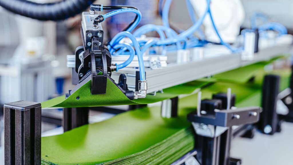 „Textil ist nicht gleich Textil! Damit wir mit dem Strömungsgreifer nicht an technische Grenzen kommen, haben wir unser Produktportfolio erweitert,“ so Müller. „Wir können mit dem Tape-Gripper und dem Roll-Up-Gripper Werkstücke handhaben, die nicht mit dem Flattereffekt des Strömungsgreifers vereinzelt werden können. Z.B. haben wir bereits Verbundwerkstoffe mit dem Kleberollengreifer abgestapelt, während wir Gewebe mit dem Roll-Up-Gripper greifen.“