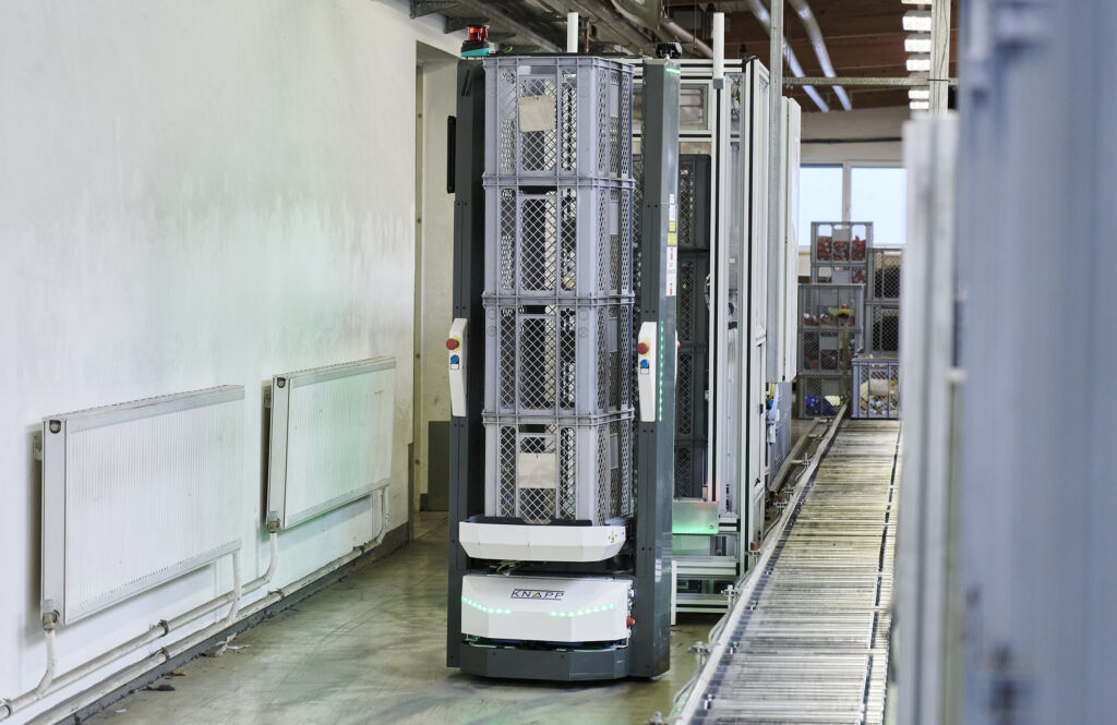 PC Electric (PCE) ist ein Unternehmen im Bereich der Entwicklung und Produktion von Industriesteckvorrichtungen mit einer Exportquote von über 80 Prozent. Am Headquarter in Oberösterreich fertigt das Unternehmen rund 700.000 Artikel pro Woche. Trotz umfangreicher Automatisierung in der Produktion erfolgte der Leerbehältertransport in den letzten 20 Jahren manuell. Das Auftragsvolumen stieg jedoch deutlich. Rund 1.200 Behälter mussten täglich eine Wegstrecke von 103m transportiert werden. Um den Leerbehältertransport zu automatisieren, hat sich PCE für die Implementierung der Open Shuttles von Knapp entschieden.