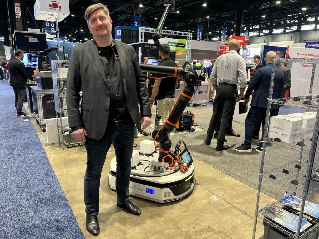 Es gibt Anwendungen, da ist die Integration einfacher, wenn man die elektrischen Signale direkt im Roboter hat. So muss man sich nicht mit einer großen externen Steuerung herumschlagen. Ein klassisches Beispiel dafür ist ein kleines AGV oder ein AMR, bei dem nicht genug Platz für eine Steuerung vorhanden ist und der Roboter die einzige Einheit ist, die elektrische Signale überträgt. Man kann dann die Signale unseres Cobot-Arms nutzen, um auch die anderen elektrischen Komponenten im mobilen Roboter zu steuern.