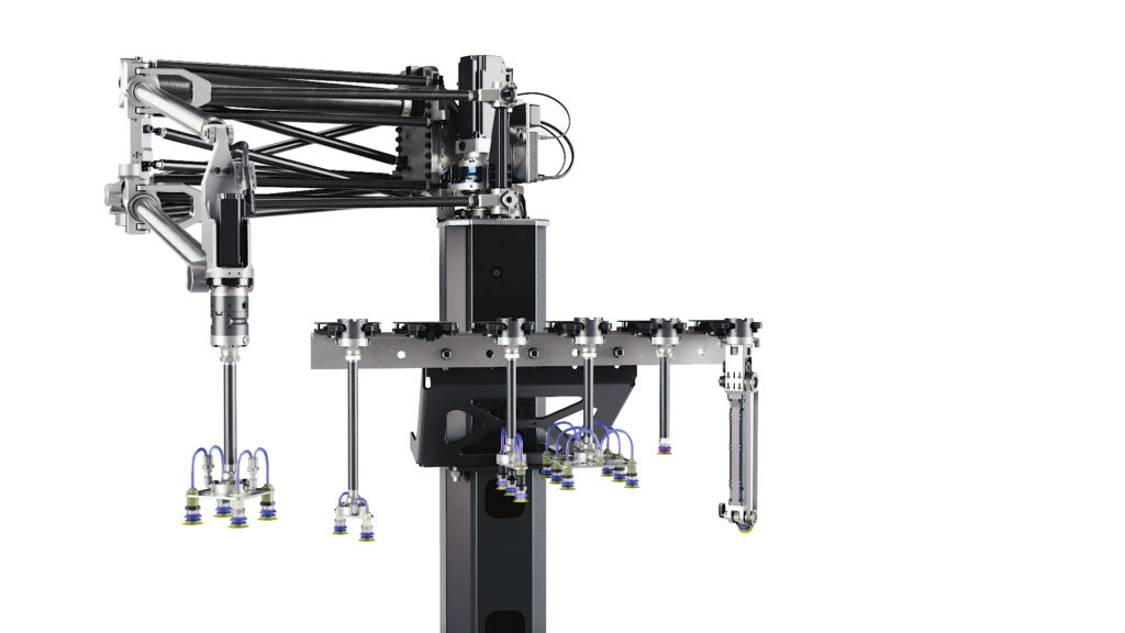 Im Vergleich zu üblichen Scara-, Delta- und Sechsachs-Robotern ist der HKM1800 für Pick&Place-Anwendungen angepasst und mit den richtigen Freiheitsgraden entworfen. Der Roboter schafft eine maximale Traglast von 7,5kg und eine Reichweite von 1.800mm und deckt einen Arbeitsbereich von 10m² ab. Malmgren sagt: „Bei der Konstruktion hatten wir uns an den deutschen Fachwerkbrücken orientiert.“ Er besteht aus einem leichten Hochleistungsmaterial, die Arme sind aus Kohlefaser und für die Gelenke wird Aluminium verwendet. „Dabei haben wir alle Servomotoren und Getriebe an einem zentralen Punkt platziert, der sich kaum bewegt. Wir nutzen die Gesetze der Physik – die gesamte bewegte Masse ist leicht, und alle schweren Dinge stehen im Grunde still“, gibt sich Malmgren begeistert. Der HKM1800 ist so konfiguriert, dass er äußerst wenig Masse bewegt, was hohe Leistungen bei geringem Energieverbrauch ermöglicht.