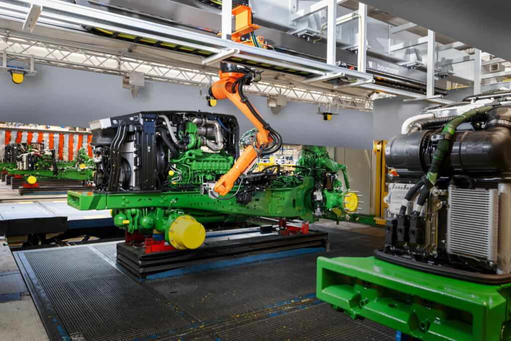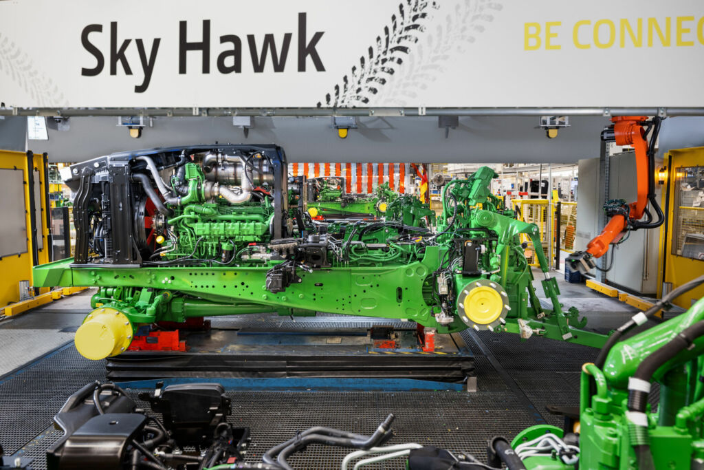 Auf dem Acker unterscheiden satellitengestützte Hochgeschwindigkeitskameras von John Deeres See&Spray-System bereits in Sekundenbruchteilen Nutzpflanzen von Unkräutern. Für die Produktion sollte nun ein vollautomatisches Inspektionssystem her, das Montageergebnisse mit industrieller Bildverarbeitung interpretiert. Zunächst musste ein solches System nahtlos in die über Jahre gewachsene Fabrikstruktur in Mannheim integriert werden, idealerweise, ohne den Fertigungsalltag zu stören. Deshalb baute das Team der Automatisierten Fertigung als erstes einen digitalen Prototypen des Systems, den Sky Hawk. Der analoge Prüfungsablauf eines Traktors wurde ebenso in ein digitales Modell übertragen, bevor die Anlage ins reale Werk gesetzt wurde.