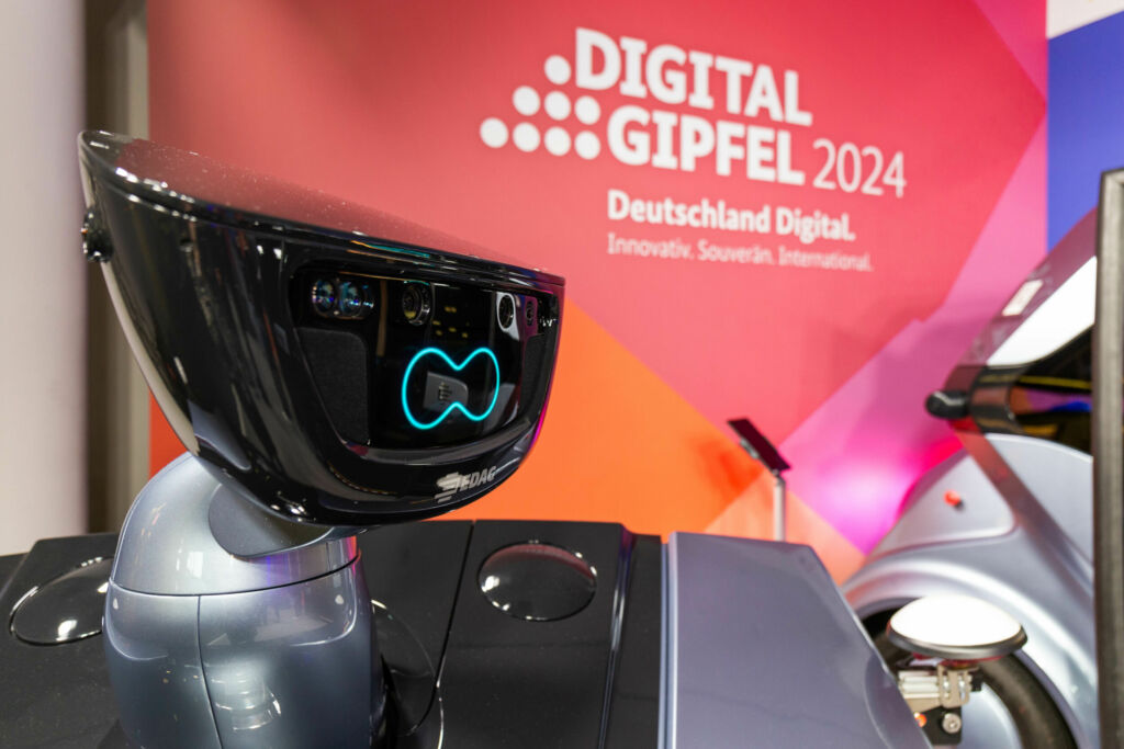 Beim zweitägigen Digital-Gipfel der Bundesregierung präsentierte die EDAG Group ihr modulares Roboterfahrzeug EDAG CityBot. Dabei handelt es sich um automatisierte, vernetzte, emissionsfreie und fahrerlose Roboterfahrerzeuge, die mithilfe modularer Bauweise unterschiedliche Aufgaben im urbanen Raum übernehmen können. Ob als Transportfahrzeug, Reinigungseinheit oder als mobiler Assistent – durch ihre Flexibilität sollen die CityBots ein Schlüsselfaktor für die nachhaltige, profitable und effiziente Mobilität von morgen werden. Eine eigens entwickelte Leitsoftware navigiert die automatisierten Fahrzeuge staufrei und sicher durch den Verkehr. Optional sind die Roboterfahrzeuge auch teleoperiert steuerbar. Zur Automatisierung der Fahrfunktionen besitzen die CityBots ein konfigurierbares Sensor-Set, vornehmlich bestehend aus Lidar und 3D-Stereokameras. Die Umsetzung der Fahrfunktionen wird durch eine skalierbare Software-Plattform mit 40 Kernmodulen realisiert. Die Kommunikation der Roboterfahrzeuge erfolgt über 5G-Mobilfunk und das Internet mit einem fahrzeugexternen, von der EDAG Group entwickeltem, Mobility Backend.