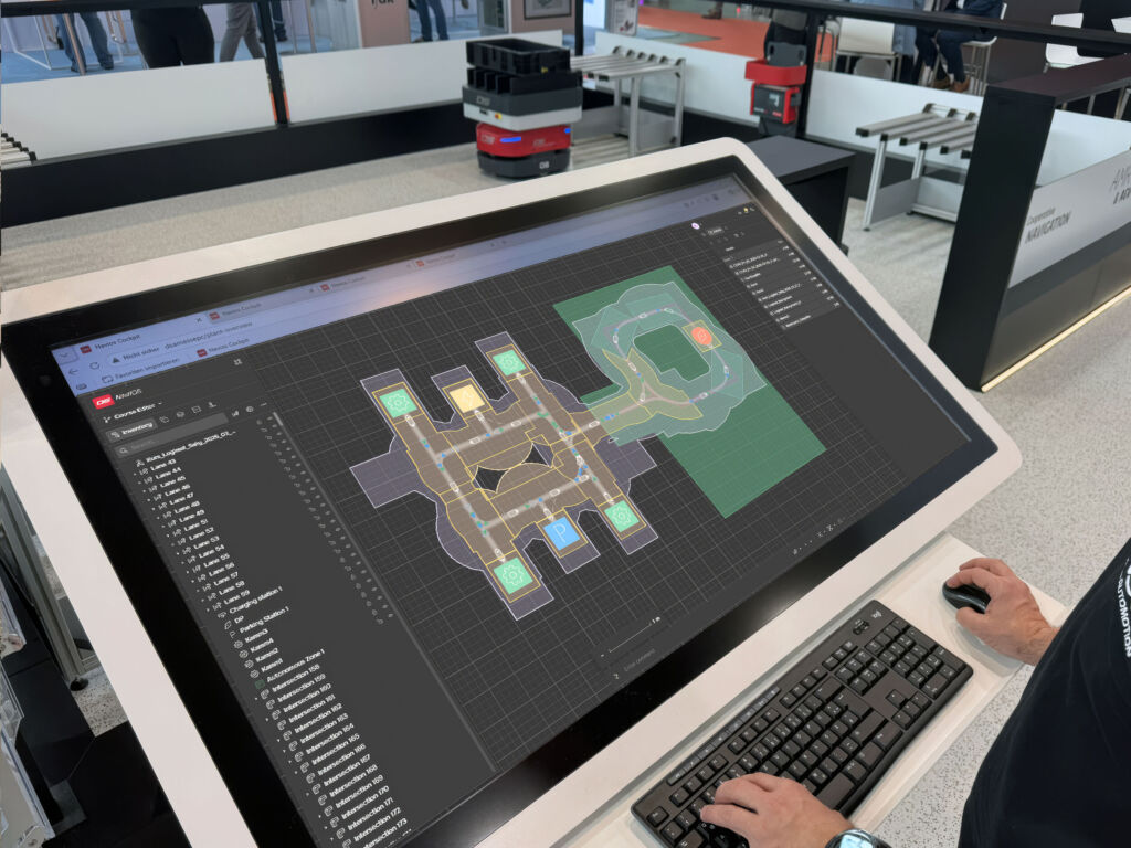 DS Automotion zeigte auf der diesjährigen Logimat, wie flexibel sich fahrerlose Transportsysteme und autonome mobile Roboter an unterschiedliche Logistik- und Kundenanforderungen anpassen lassen. Im Mittelpunkt stand die neue Version des Flottenmanagers Navios Cockpit 3.0 mit dem Fahrkursplanungstool von Navios. Zweimal täglich wurde eine reale AMR-Anlage in moderierten Live-Demonstrationen präsentiert. So ließ sich zeigen, wie sich autonome Transportfahrzeuge schnell, flexibel und planbar in bestehende Intralogistikprozesse integrieren lassen. In der auf der Messe gezeigten Anlage wurde anschaulich, wie flexibel sich Materialflüsse heute steuern lassen. Zwei autonome Fahrzeuge wurden zentral über Navios koordiniert, während sich Fahrwege und Übergabepunkte in Echtzeit anpassen ließen. Das System sorgte dabei automatisch für reibungslose Abläufe, indem es Platzverhältnisse berücksichtigte und kritische Bereiche so optimierte, dass es zu keinen Störungen im Betrieb kam.