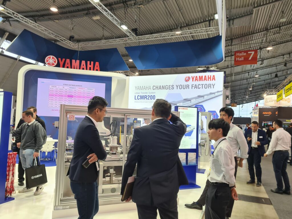 Yamaha hat auf der diesjährigen Motek u.a. gezeigt, wie Scara- und kartesische Roboter einen Mehrwert für die kundenspezifische Automatisierung von sich wiederholenden Prozessen wie Stanzen, Sortieren und Prüfen bieten können. Der Stanzroboter am Messestand konfigurierte elektrische Steckverbinder mit hoher Geschwindigkeit und nutzte dabei die Fähigkeit des kompakten Scara-Roboters YK-XE, sein Werkzeug schnell zu wechseln, jeden Steckverbinder schnell und präzise zu positionieren und nach dem Stanzen mittels des integrierten Bildverarbeitungssystems zu prüfen. Eine vorgestellte Sortiermaschine verwendet einen Scara der YK-XG-Serie mit riemenloser Bewegung, um Kleinteile schnell zu palettieren, indem sie präzise aus erkannten Positionen kommissioniert. Darüber hinaus präsentierte das Unternehmen einen vielseitigen automatischen Baugruppentester, der einen kartesischen XY-X-Roboter integriert, um eine flexible Positionierung der Prüflinge für In-Circuit-Tests, Funktionstests und Programmierung zu ermöglichen. Die Demonstration einer End-of-Line-Handhabung von EV-Batterien mit dem größeren YK1200X-Scara zeigte, wie die Kombination aus hoher Nutzlast und interner Balance zur Kompensation des Trägheitsmoments das Heben und Bewegen schwerer Gegenstände bei hoher Geschwindigkeit und die endgültige Positionierung mit Submillimeter-Genauigkeit ermöglicht.