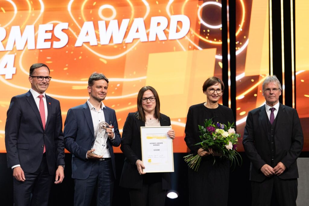 In diesem Jahr wurde Schunk im Rahmen der Eröffnung der Hannover Messe für ein KI-basiertes Projekt mit dem Hermes Award ausgezeichnet. Das Unternehmen erhielt den Preis für ein Applikations-Kit, bestehend aus einer Kamera mit Objektiv, einem Industrie-PC, einer KI-Software sowie einem applikationsspezifischen Greifer. Der Startup Award ging an Archigas – das junge Unternehmen erhielt den Preis für einen kompakten, feuchtigkeitsresistenten Sensor zur schnellen, exakten und zuverlässigen Messung von Wasserstoff.