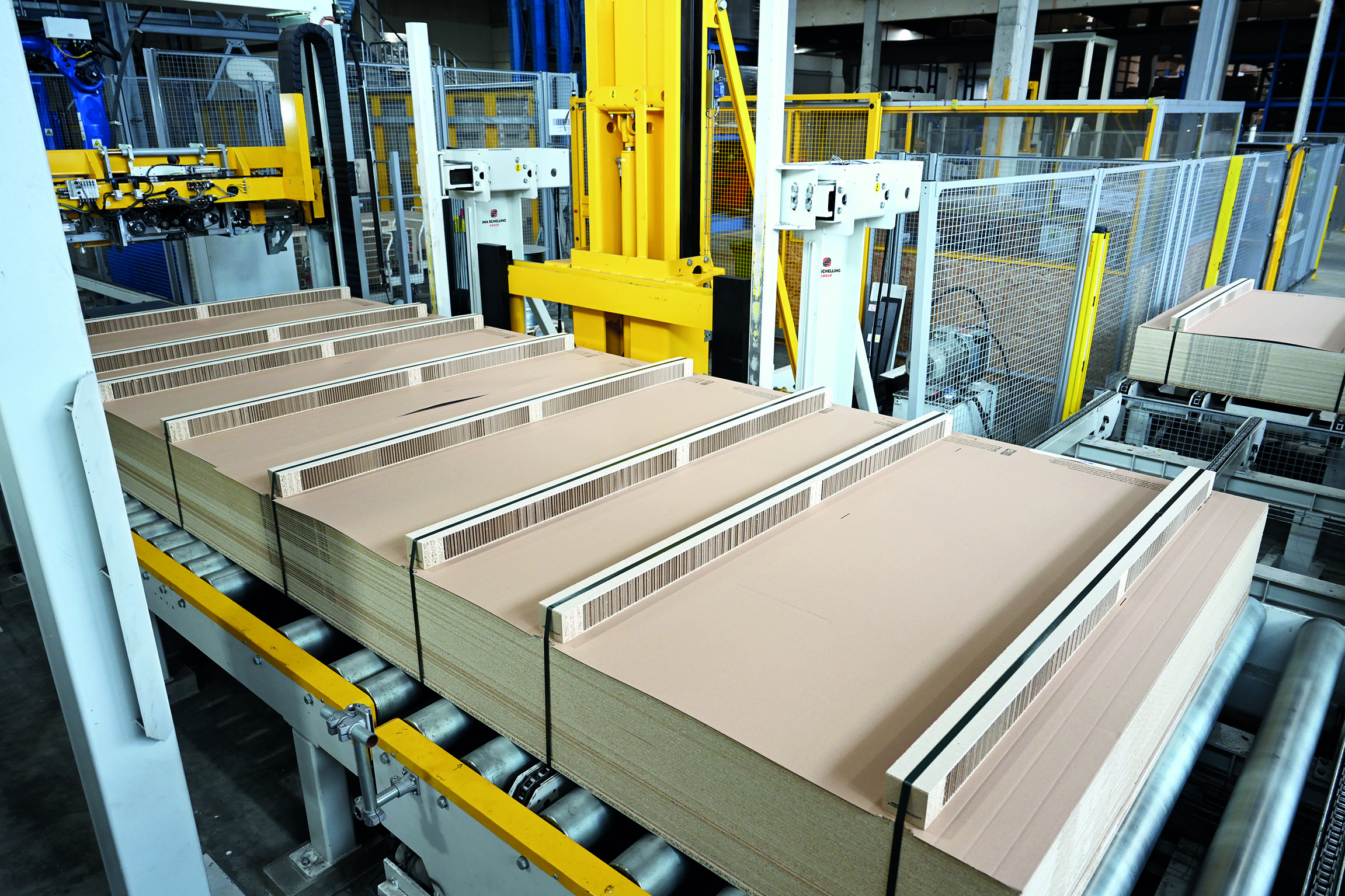 Die Aufgabenstellung war ebenso klar wie anspruchsvoll: Die logistischen Abläufe sollten flexibler werden und dabei mit weniger Zeit und Manpower auskommen – selbstverständlich ohne Kompromisse bei den Faktoren Sicherheit und Qualität. „Die komplexe Lösung umfasst ein Kommissionierlager für beschichtete Platten und stellt damit die effiziente Ein- und Auslagerung von Dekor-Imprägnaten und Platten sicher“, erläutert Hinterholzer das Konzept. „Kundenkommissionen werden auf Bestellung stückgenau zu versandfertigen homogenen oder inhomogenen Plattenstapeln zusammengestellt. Anschließend durchlaufen die Stapel einen vollautomatischen Verpackungsprozess und sind zuletzt für den Versand per LKW bereit.“