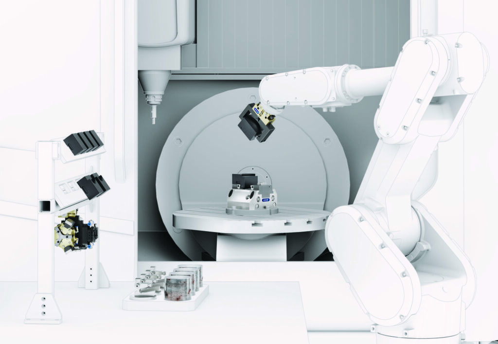 Mit den Kraftspannblöcken Tandem BWA von Schunk ist es möglich, kleine Losgrößen unterschiedlicher Werkstücke voll automatisiert zu spannen. Mit dem neuen Backen-Schnellwechselsystem können die Spannbacken der Tandem-Kraftspannblöcke manuell oder voll automatisiert über einen Roboter gewechselt werden. Das System gibt es zukünftig standardmäßig für die pneumatischen sowie hydraulischen Zwei- und Drei-Backen-Kraftspannblöcke in den Baugrößen 100, 140, 160 und 250.
