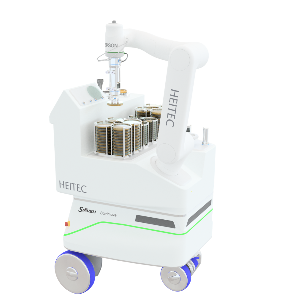 Mit H.U.G.S. (Heitec Universal GMP Solution) präsentiert Heitec auf der diesjährigen SPS eine neue Generation mobiler Robotik für GMP-regulierte Umgebungen. Die Lösung wurde in enger Kooperation mit Stäubli realisiert – Stäubli liefert das mobile Basissystem, während Heitec für die Entwicklung, das Topmodul, das Engineering und die komplette Systemintegration verantwortlich ist. Die mobile Roboterlösung ist speziell für kontrollierte und reinraumgerechte Produktionsbereiche konzipiert und verbindet aseptisches Design mit digitaler Vernetzbarkeit über Standards wie OPC UA. Typische Einsatzfelder sind Material- und Proben-Handling, Umwelt-Monitoring oder Batch-Transfers – kontaminationsarm, validierbar und GMP-konform.