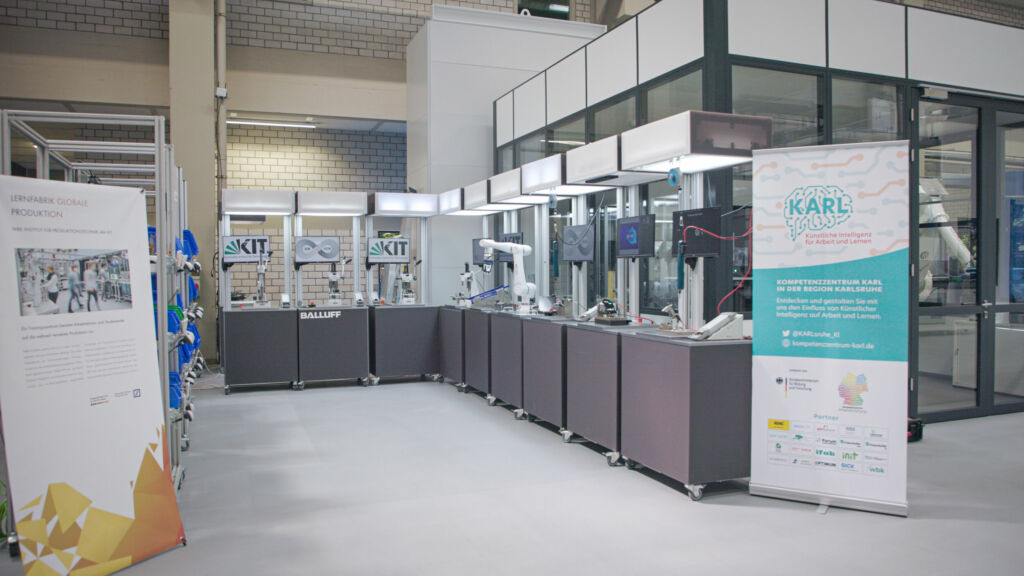 Im Rahmen des Forschungsprojekts ‚Karl‘ (Künstliche Intelligenz für Arbeit und Lernen in der Region Karlsruhe) werden am WBK Institut für Produktionstechnik des Karlsruher Instituts für Technologie auf KI basierende Assistenzsysteme für Produktionsprozesse entwickelt. Sie sollen flexibel auf Veränderungen in der Fertigung reagieren und Mitarbeitende bei monotonen oder komplexen Aufgaben entlasten, ohne ihre Arbeitsplätze zu ersetzen. Karl ist ein Gemeinschaftsprojekt, das Unternehmen wie Adesso, ArtiMinds Robotics, Kinemic, Optimum Datamanagement Solutions, Sick sowie wissenschaftliche Einrichtungen wie das FhIOSB, das WBK des KIT und die Hochschule Karlsruhe vereint. Das Projekt wird durch das Bundesministerium für Bildung und Forschung im Programm ‚Zukunft der Wertschöpfung – Forschung zu Produktion, Dienstleistung und Arbeit‘ gefördert und vom Projektträger Karlsruhe betreut.