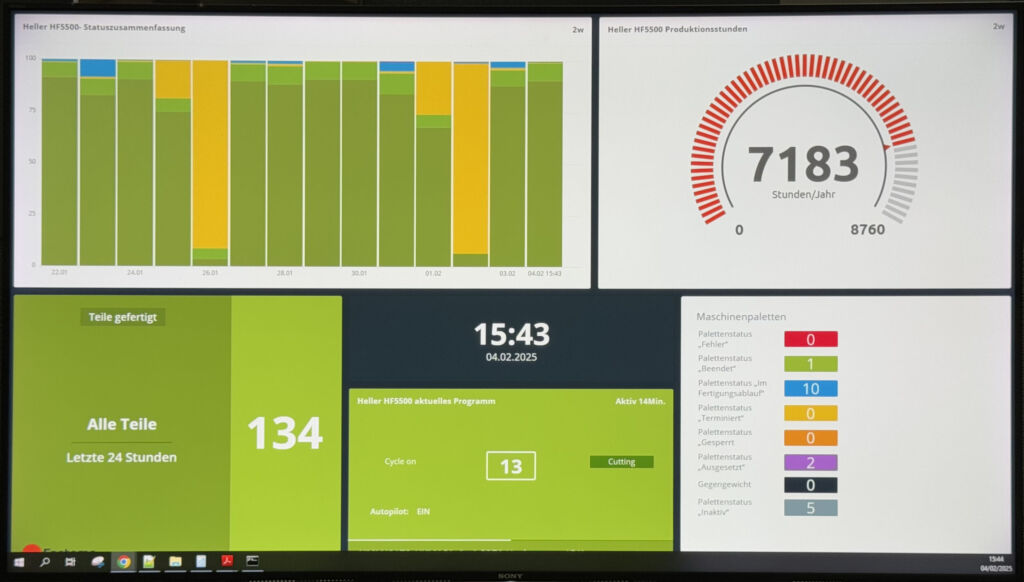 Einmal in der MMS hinterlegte Stammdaten für Aufträge lassen sich bei Wiederholaufträgen sofort abrufen, sodass die Produktion unmittelbar gestartet werden kann. Die MMS übernimmt in diesem Zusammenhang das vollständige Werkzeugmanagement und erteilt die entsprechenden Aufträge auch an die Werkzeugvoreinstellung. Momentan werden die Aufträge noch manuell in die Steuerung eingegeben. Mit Blick auf weitere Automatisierungsprojekte und der damit verbundenen Anbindung der MMS an das ERP-System haben die rund 20 Mitarbeiter im Projektteam aber schon jetzt Gelegenheit, sich mit der Software und deren Potenzialen vertraut machen.