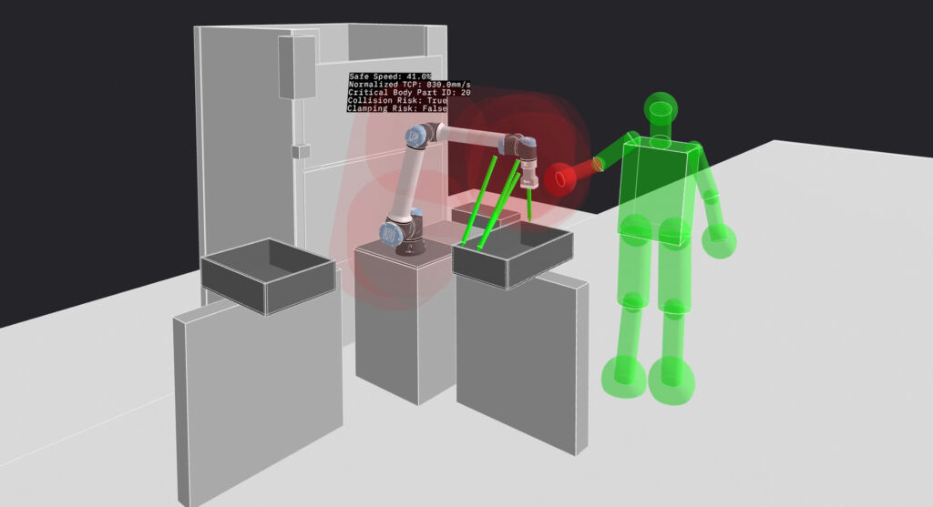 Das europäische Forschungsprojekt RoboSapiens erreicht die ersten wichtigen Meilensteine. Das vom EU-Programm Horizont Europa geförderte Konsortium hat es sich zum Ziel gesetzt, die nächste Generation selbstadaptiver Industrieroboter zu entwickeln. Ziel ist es, Roboter zu befähigen, flexibel auf wechselnde Umgebungen zu reagieren. Gleichzeitig soll eine sichere und vertrauensvolle Zusammenarbeit mit Menschen gewährleistet sein. Jetzt liegt die Fallstudie des Fraunhofer IFF vor. Die Forschenden haben erste vielversprechende Ergebnisse vorgelegt. Sie zeigen, dass Roboter in der Lage sind, ihre Strategien während laufender Prozesse dynamisch zu verändern, etwa wenn es zu Störungen oder plötzlichen Änderungen in der Umgebung kommt. Konkret wird die Kombination der Sicherheitsmodi ‚Kraft- und Leistungsbegrenzung‘ und ‚Geschwindigkeits- und Abstandsüberwachung‘ gemäß ISO/TS15066 umgesetzt. Dieser Ansatz vereint das Beste beider Welten: Ohne Mensch im Arbeitsraum bewegt sich der Roboter schnell und effizient. Nähert sich ein Mensch, passt sich die Geschwindigkeit körperteilspezifisch an, bleibt dabei jedoch stets am erlaubten Maximum. So entsteht eine echte, produktive Mensch/Roboter-Kollaboration, die nicht an mangelnder Effizienz scheitert.