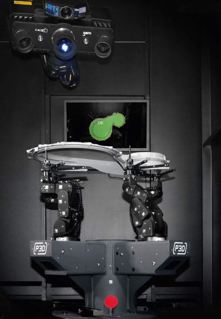 Das Poly Robot Automated Fixture System, kurz PRAFS, der Firma Protos-3D automatisiert das virtuelle Spannen durch eine robotergestützte Multi-Aufnahme. Damit erweitert das Unternehmen die ScanBox-Technologie von Zeiss Industrial Quality Solutions. Die Ausführungen 2410 und 2414 positionieren und vermessen Bauteile unterschiedlicher Modelle bis 1.000 bzw. 1.400mm der Elektronik-, Automobil-, Luft- und Raumfahrtindustrie ohne mechanischen Umbau oder manuelle Rüstzeit. Sie arbeiten mit vier Robotern und einem integrierten Vision-System, das die Bauteilumrisse und die Geometrie in Echtzeit auf dem Bildschirm projiziert. Dabei arbeitet das System mit Augmented Reality. Das Bauteil wird per Kamera getrackt und bei korrekter Position visuell bestätigt. Eine aufwendige manuelle Justierung entfällt. Nach dem Einlegen wird der Messprozess durch den Bediener gestartet und läuft vollautomatisch. Die erfassten Daten werden durch Virtual Clamping spannungsfrei fixiert, analysiert und dokumentiert – ganz ohne physische Spanntechnik.